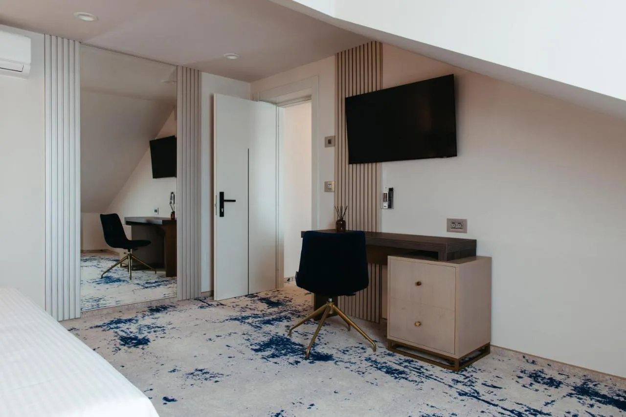Dimensiuni: 40 mp Numar de camere: 1 camera Oaspeții vor avea o experiență specială, deoarece această suită oferă saună. Această suită are 1 living, 1 dormitor separat și 1 baie cu duș tip walk-in și articole de toaletă gratuite. De asemenea, suita are aer condiționat, TV cu ecran plat cu servicii de streaming, dulap, minibar, precum și aparat de ceai și cafea. Unitatea de cazare este prevăzută cu 2 paturi. Baie privată cu cadă