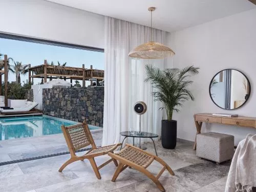 Toate opțiunile de cazare sunt amenajate cu gust și mobilate impecabil, oferind acces direct la piscina unică în stil lagună. Pentru confortul dumneavoastră, veți găsi halate de baie, papuci și produse de toaletă gratuite. Pe plajă sunt oferite gratuit șezlonguri și umbrele.