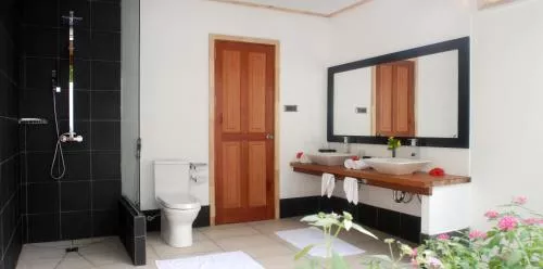Dimensiuni: 55 mp Numar de camere: 2 camere Boasting a private entrance, this air-conditioned bungalow features 1 bedroom and 1 bathroom with a walk-in shower. Featuring a terrace with garden views, this bungalow also features a minibar and a flat-screen TV with cable channels. The unit has 1 bed. Baie privată cu duș