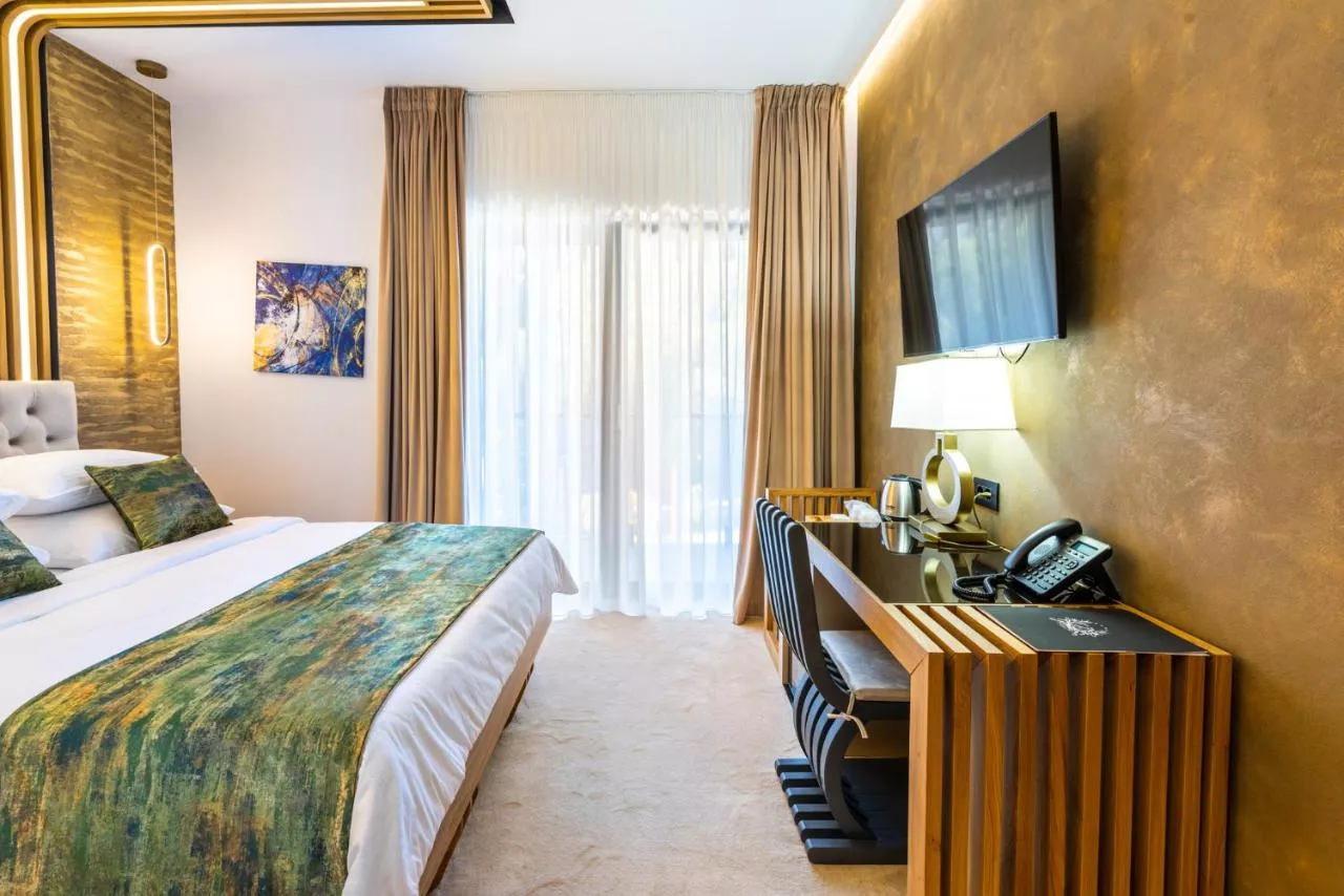 Dimensiuni: 15 mp Numar de camere: 10 camere Camera dublă are aer condiționat, minibar și baie privată cu duș și uscător de păr. Unitatea are 1 pat.