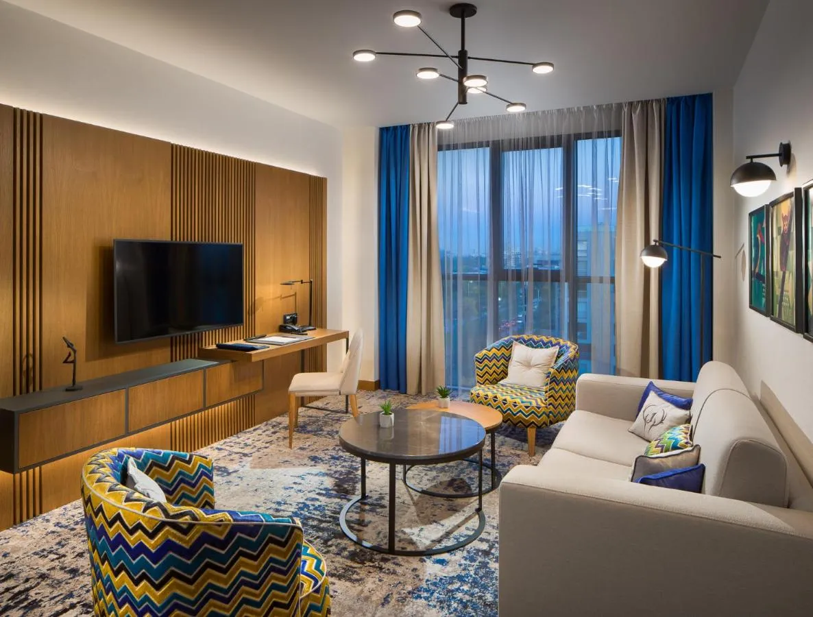 General : Seif pentru laptop Seif Fier de călcat Facilităţi de călcat Încălzire Izolare fonică Aer condiţionat Bucătărie: Mașină de cafea Frigider Cană fierbător Scaun înalt pentru copii Accesibilitate: Etaje superioare accesibile cu liftul Întreaga unitate accesibilă cu scaunul cu rotile Media/Tehnologie: TV cu ecran plat Canale cu plată Video TV Telefon Canale prin cablu Canale prin satelit Dormitor: Paturi extra lungi (> 2 metri) Lenjerie de pat Garderobă sau dulap Servicii: Serviciu de trezire Zonă de living: Canapea Zonă de relaxare Baie: Prosoape Articole de toaletă gratuite Papuci de casă Uscător de păr Toaletă Duş Hârtie igienică Baie privată Facilităţile camerei: Priză lângă pat Canapea extensibilă Mâncăruri și băuturi: Aparat pentru prepararea de ceai/cafea Minibar Vedere: Vedere la oraș Distanțare fizică: Aer condiționat individual pentru fiecare cameră de la proprietate