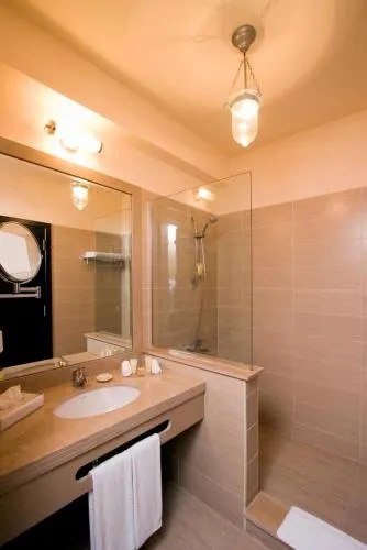 Dimensiuni: 38 mp Numar de camere: 10 camere Această cameră are decor elegant, TV cu ecran plat, minibar, baie în cameră și balcon cu vedere laterală la mare. Baie privată cu duș