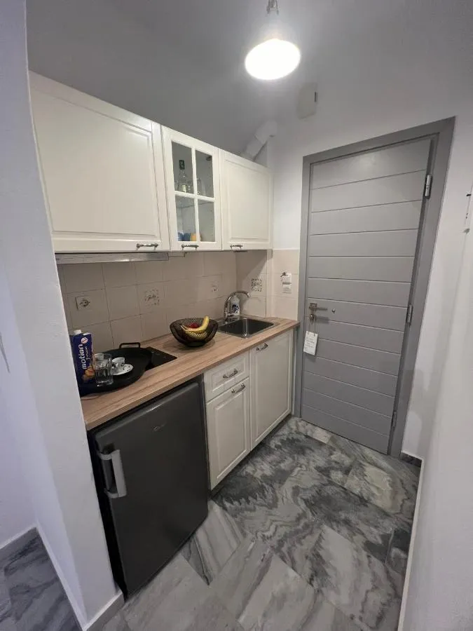 Dimensiuni: 35 mp Numar de camere: 1 camera Only 100 metres from the beach, this air-conditioned studio opens to a balcony with mountain or Aegean Sea view. It features a kitchenette with a fridge, as well as a TV.