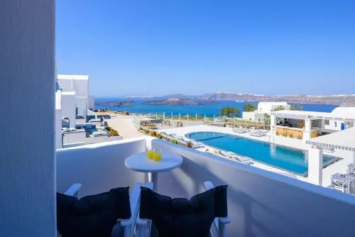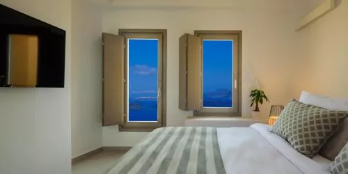 Suiturile individual decorate au o vedere impresionantă asupra Caldera și dispun de un living cu un televizor cu ecran plat și o verandă sau un balcon privat.