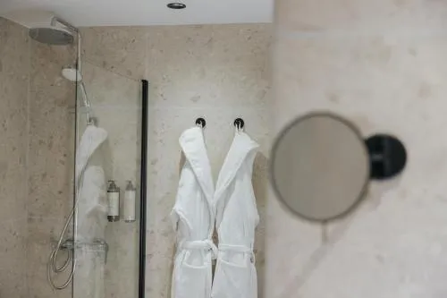 Baie: Halat de baie Prosoape Articole de toaletă gratuite Papuci de casă Uscător de păr Toaletă Hârtie igienică Cadă Baie privată General : Seif Pardoseală de lemn sau parchet Facilităţi de călcat Încălzire Izolare fonică Aer condiţionat Vedere: Vedere la mare Accesibilitate: Etaje superioare accesibile cu liftul Media/Tehnologie: TV cu ecran plat Canale cu plată TV Telefon Canale prin cablu Canale prin satelit Servicii: Serviciu de trezire Exterior: Mobilier de grădină Balcon Zonă de living: Zonă de relaxare Facilităţile camerei: Priză lângă pat Mâncăruri și băuturi: Aparat pentru prepararea de ceai/cafea Minibar Dormitor: Lenjerie de pat Bucătărie: Cană fierbător