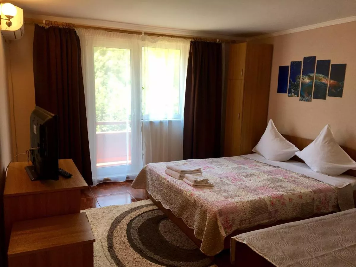 Dimensiuni: 16 mp Numar de camere: 4 camere Cameră cu aer condiționat, 1 pat dublu și 1 pat de o persoană, TV cu ecran plat cu canale prin cablu, frigider, balcon și baie privată cu duș. Baie privată cu duș