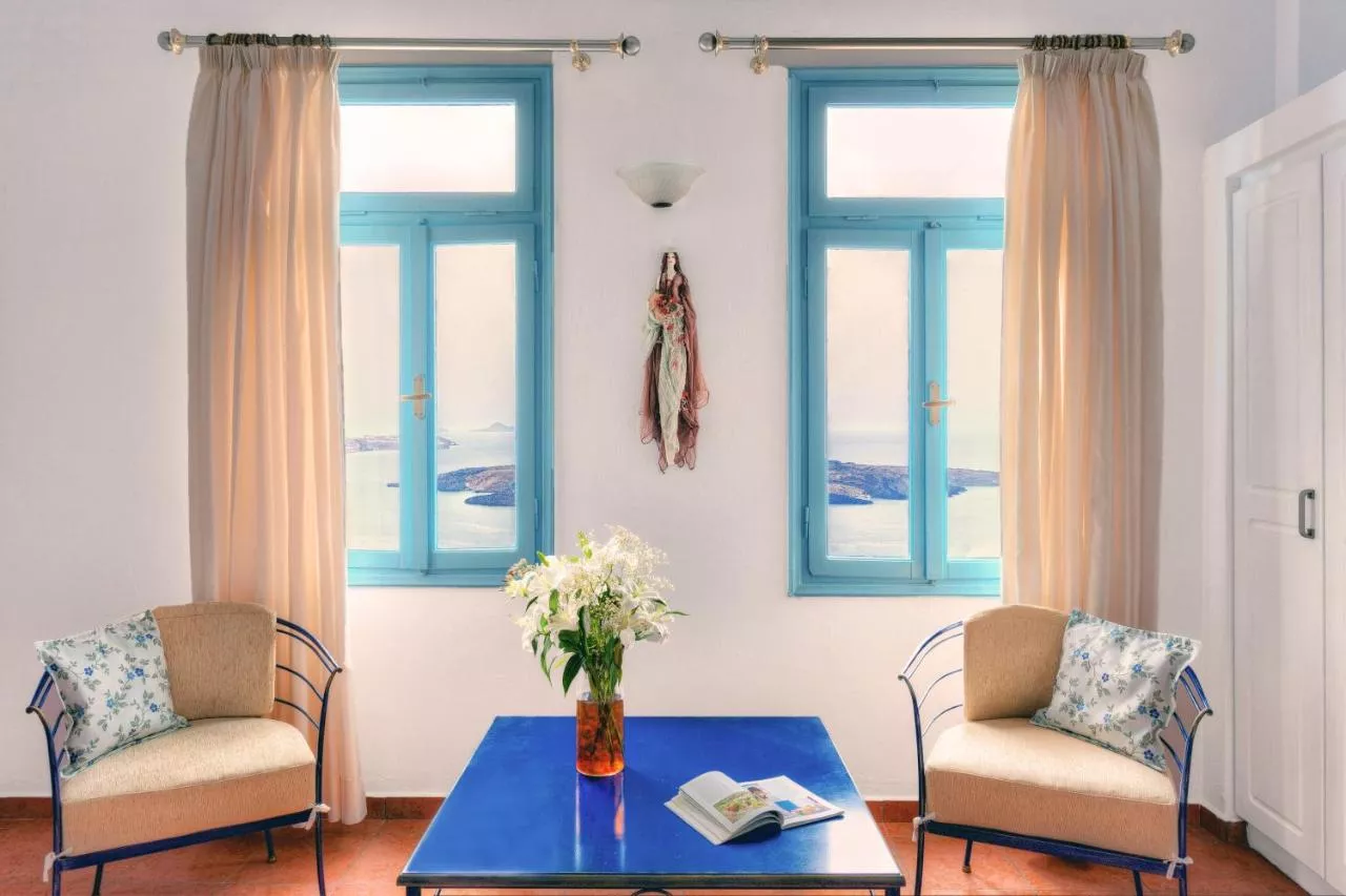 Personalul de la biroul de turism poate oferi informații despre atracțiile din apropiere, cum ar fi pitorescul Oia, situat la 11 km distanță. Aeroportul Santorini este la 8 km distanță.