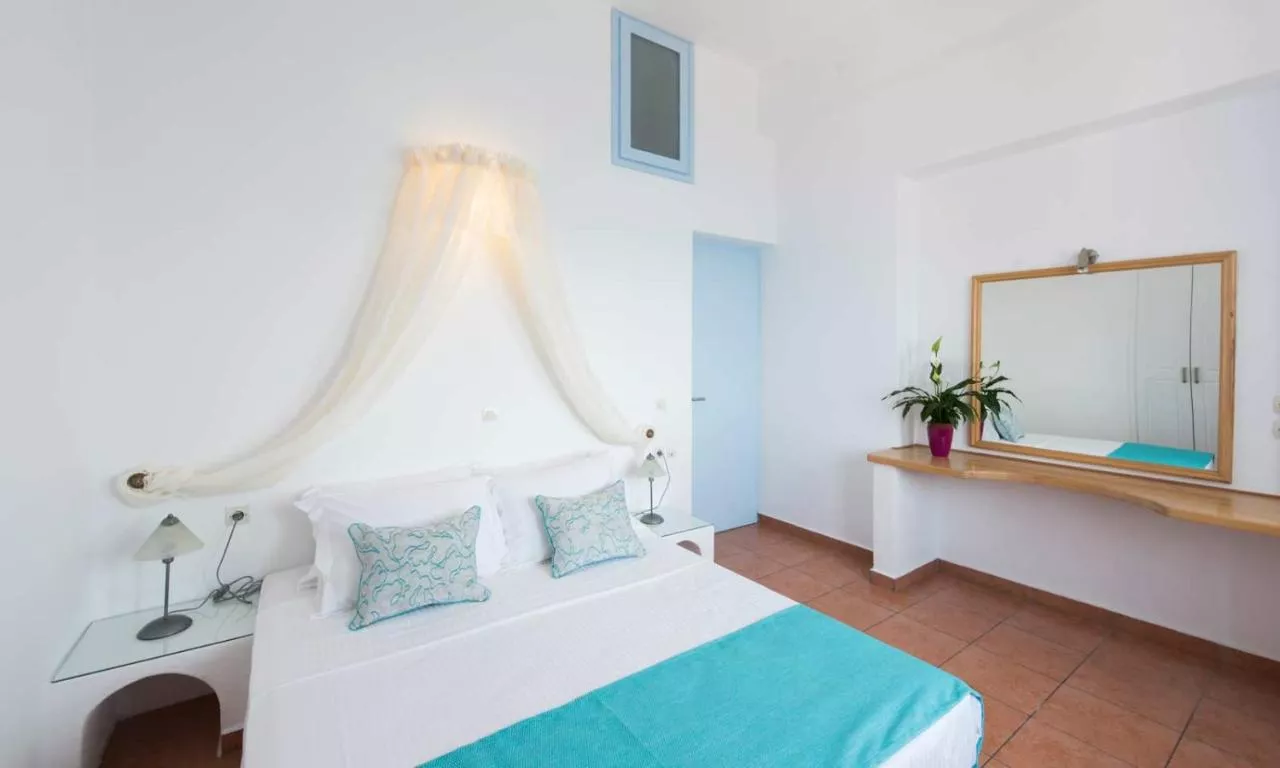 Toate suitele de la Kastro au mobilier din fier forjat, culori deschise cu detalii albastre și o decorație elegantă, oferind un televizor cu canale prin satelit și canapea. Fiecare are un frigider. Băile sunt dotate cu halate de baie, uscător de păr și produse de toaletă gratuite.