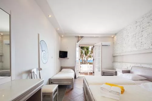 Dimensiuni: 22 mp Numar de camere: 10 camere Această cameră triplă dotată cu aer condiționat are TV cu ecran plat cu canale prin satelit, baie privată și terasă cu vedere la mare. Unitatea include 3 paturi. Baie privată cu duș