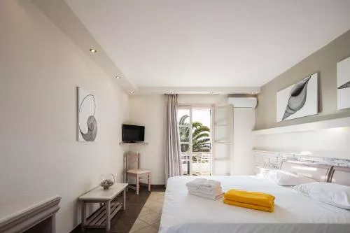 Dimensiuni: 25 mp Numar de camere: 2 camere This air-conditioned room opens to a balcony or terrace with sea view. It offers a satellite, flat-screen TV, safety box and fridge. Baie privată cu duș