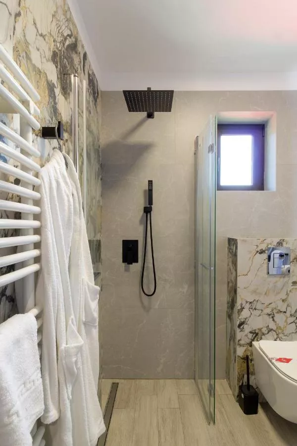 Baie: Halat de baie Prosoape Articole de toaletă gratuite Papuci de casă Uscător de păr Toaletă Duş Hârtie igienică Baie privată Accesibilitate: Etaje superioare accesibile doar pe scări Media/Tehnologie: TV cu ecran plat TV Canale prin cablu Canale prin satelit Servicii: Serviciu de trezire Vedere: Vedere la munte Vedere la oraș Vedere la punct de atracţie Exterior: Mobilier de grădină Terasă Balcon General : Facilităţi de călcat Încălzire Facilităţile camerei: Priză lângă pat Dormitor: Lenjerie de pat Garderobă sau dulap Mâncăruri și băuturi: Minibar Bucătărie: Uscător de haine Curățenie și dezinfectare: Dezinfectant pentru mâini