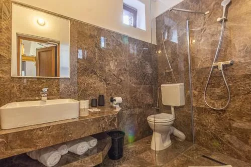 Dimensiuni: 40 mp Numar de camere: 1 camera Boasting a private entrance, this suite comes with 1 living room, 1 separate bedroom and 1 bathroom with a shower and a hairdryer. Featuring a balcony with mountain views, this suite also features a seating area and a flat-screen TV with satellite channels. The unit has 4 beds. Baie privată cu duș