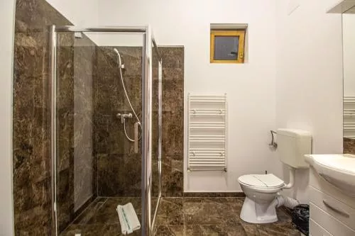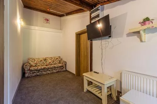 Dimensiuni: 50 mp Numar de camere: 1 camera Featuring a private entrance, this suite is comprised of 1 living room, 1 separate bedroom and 1 bathroom with a shower and a hairdryer. The suite offers a flat-screen TV with satellite channels, a seating area, a wardrobe, a sofa as well as mountain views. The unit offers 3 beds. Baie privată cu duș