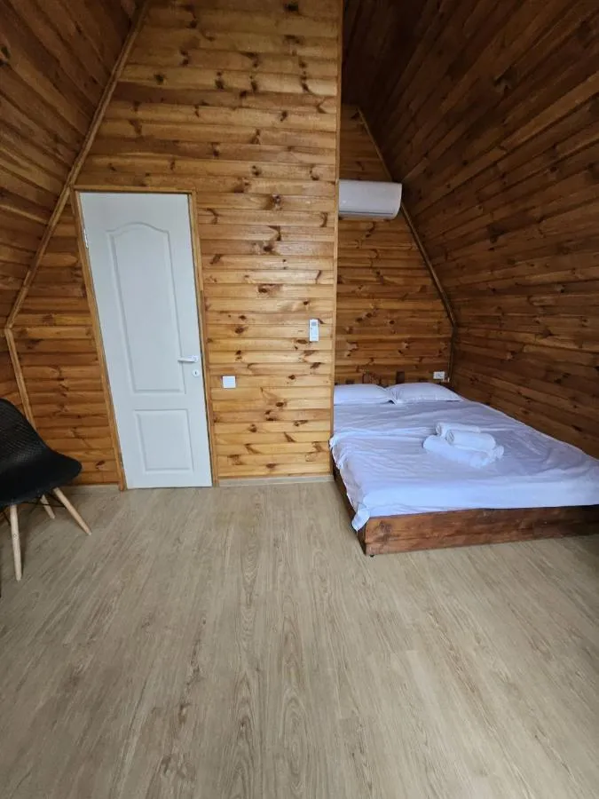 Dimensiuni: 16 mp Numar de camere: 2 camere Featuring 1 bedroom, this chalet offers 1 bathroom with a shower, a seating area and terrace where you can relax. This chalet features air conditioning, TV with streaming services, garden views, as well as wine/champagne for guests. The unit has 1 bed.