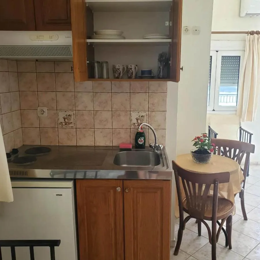 Dimensiuni: 25 mp Numar de camere: 1 camera A studio apartment that sleeps up to 4 people. It has direct view of the sea from the shared outside seating area. It has 1 full sized bed, 1 twin bed and 1 sofa bed, a private bath with shower, a kitchenette, air conditioning and free wifi. It has a private exterior entrance and there is free parking available.