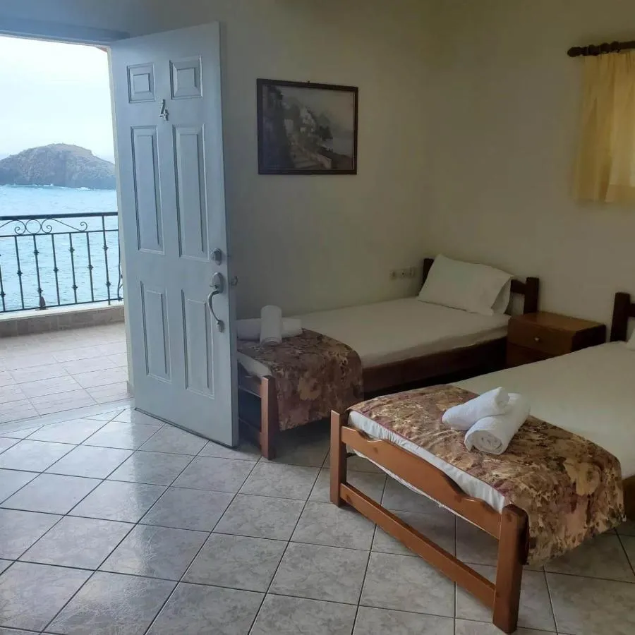 Dimensiuni: 25 mp Numar de camere: 1 camera A studio apartment that sleeps up to 4 people. It has a direct view of the sea from the shared outside seating area. It has 1 full sized bed and 2 twin beds, a private bath with shower, a kitchenette, air conditioning and free wifi. It has a private exterior entrance and there is free parking available.