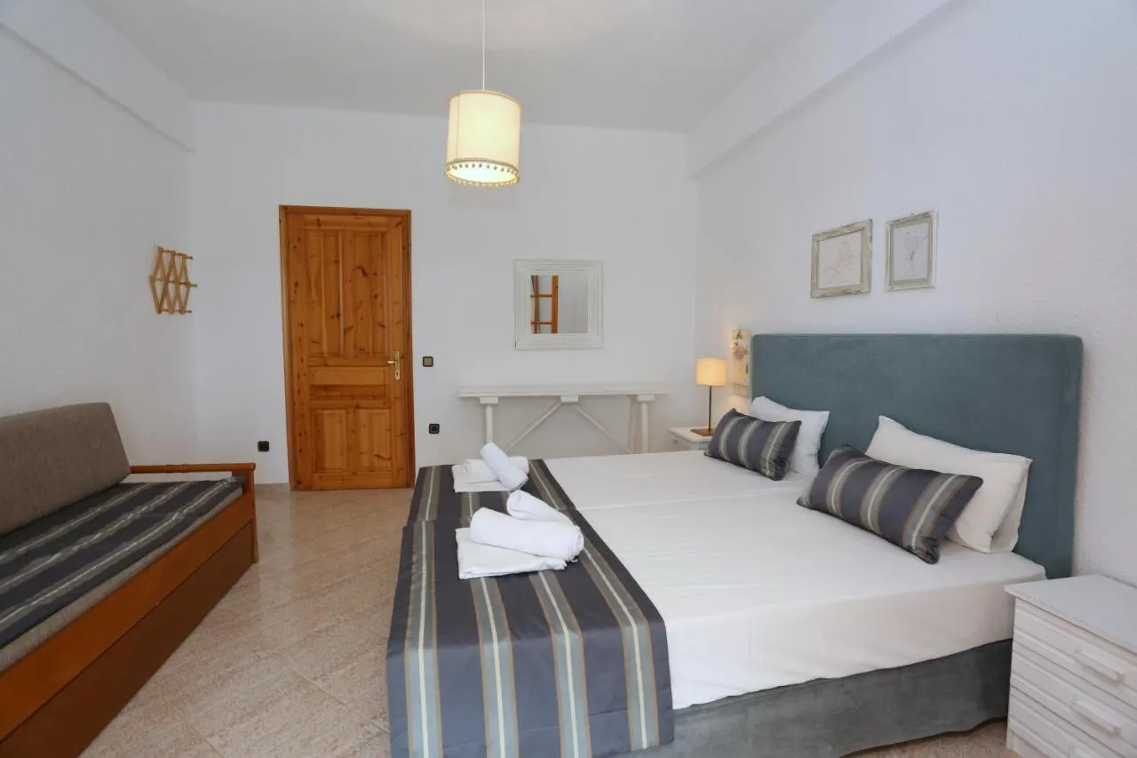 This type of flat is located back of the main road and 50 metres from the property's main building. It has sea views, but it is not in front of the sea.