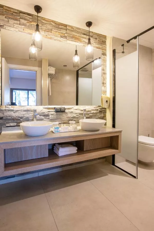 Dimensiuni: 25 mp Numar de camere: 4 camere This twin/double room's special feature is the fireplace. This air-conditioned twin/double room includes a flat-screen TV with cable channels, a private bathroom as well as a terrace. Baie privată cu cadă