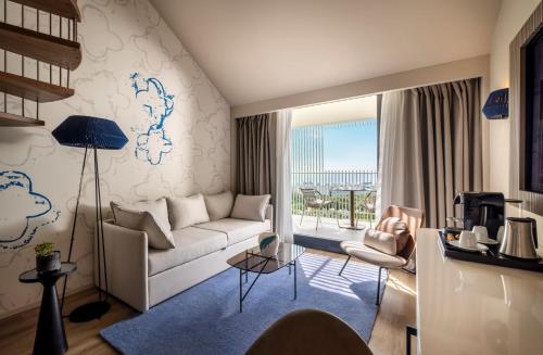 Baie: Halat de baie Prosoape Articole de toaletă gratuite Papuci de casă Cadă sau duş Uscător de păr Hârtie igienică Baie privată General : Seif Fier de călcat Facilităţi de călcat Încălzire Aer condiţionat Vedere: Vedere la mare Media/Tehnologie: TV cu ecran plat TV Telefon Canale prin satelit Servicii: Serviciu de trezire Exterior: Mobilier de grădină Balcon Zonă de living: Zonă de relaxare Facilităţile camerei: Priză lângă pat Dormitor: Lenjerie de pat Garderobă sau dulap Mâncăruri și băuturi: Minibar Bucătărie: Cană fierbător