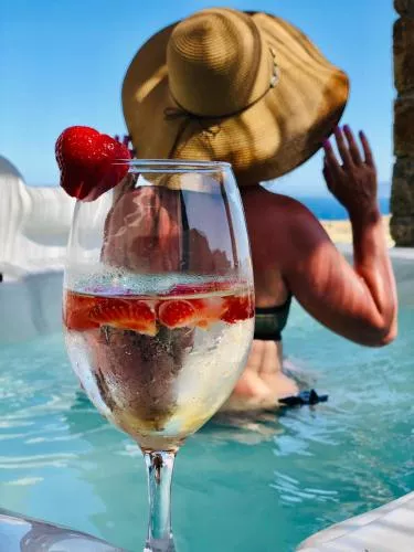 Dimensiuni: 26 mp Numar de camere: 1 camera This double room's standout features are the pool with a view, hot tub and spa bath. Providing free toiletries and bathrobes, this double room includes a private bathroom with a shower, a hairdryer and slippers. The spacious air-conditioned double room provides a flat-screen TV with streaming services, a private entrance, Smartphone, a minibar as well as sea views. The unit offers 1 bed. Baie privată cu cadă