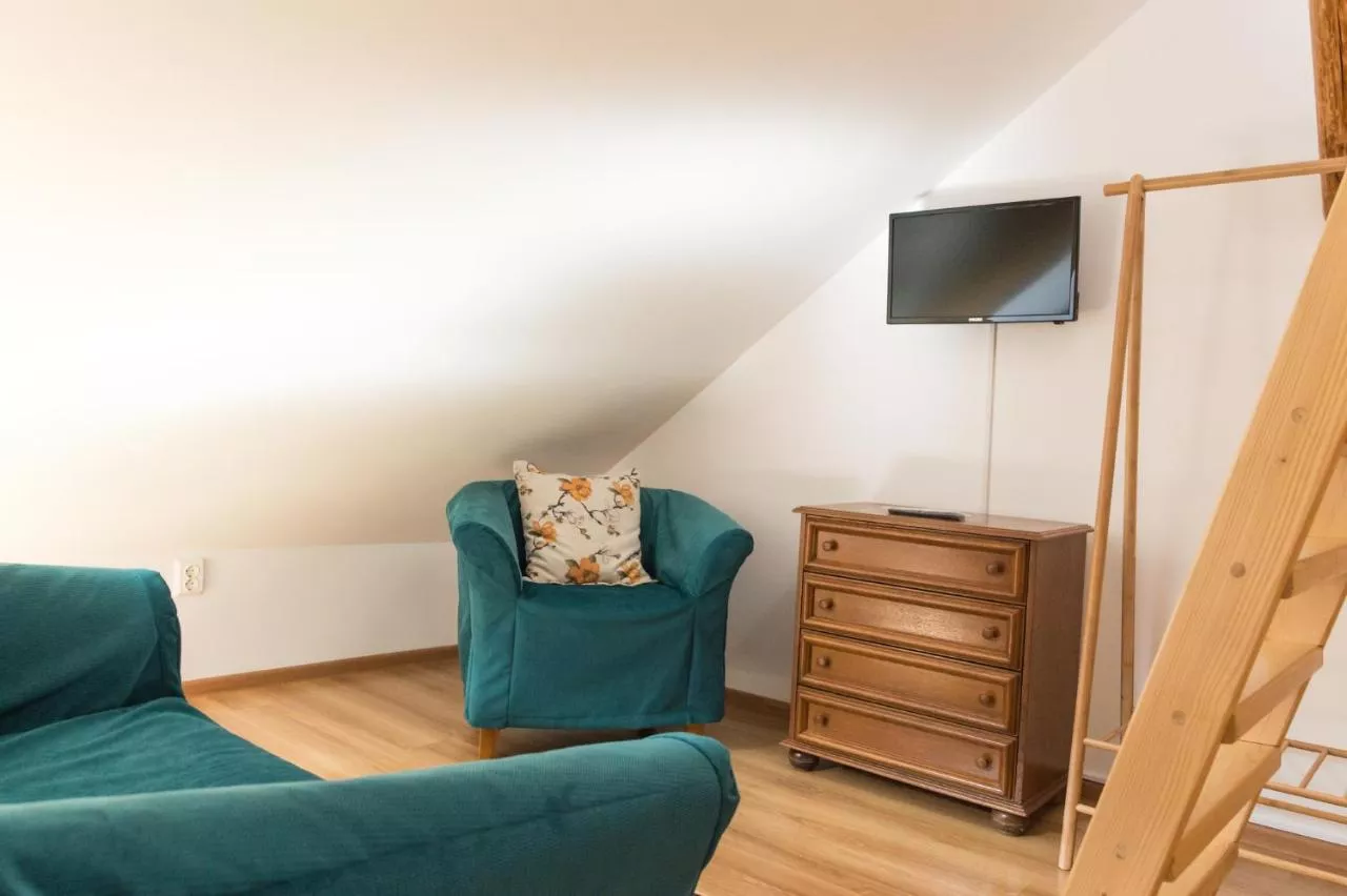 Bucătărie: Mașină de cafea Masă Cuptor cu microunde Frigider Plită de gătit Ustensile de bucătărie Chicinetă Cană fierbător Bucătărie General : Pardoseală de lemn sau parchet Fier de călcat Ventilator Intrare privată Încălzire Accesibilitate: Etaje superioare accesibile doar pe scări Media/Tehnologie: TV cu ecran plat TV Canale prin cablu Zonă de living: Canapea Zonă de relaxare Zonă de luat masa Baie: Prosoape Articole de toaletă gratuite Uscător de păr Toaletă Duş Hârtie igienică Baie privată Facilităţile camerei: Priză lângă pat Canapea extensibilă Mâncăruri și băuturi: Aparat pentru prepararea de ceai/cafea Exterior: Balcon Vedere: Vedere la grădină Dormitor: Lenjerie de pat Garderobă sau dulap Curățenie și dezinfectare: Dezinfectant pentru mâini