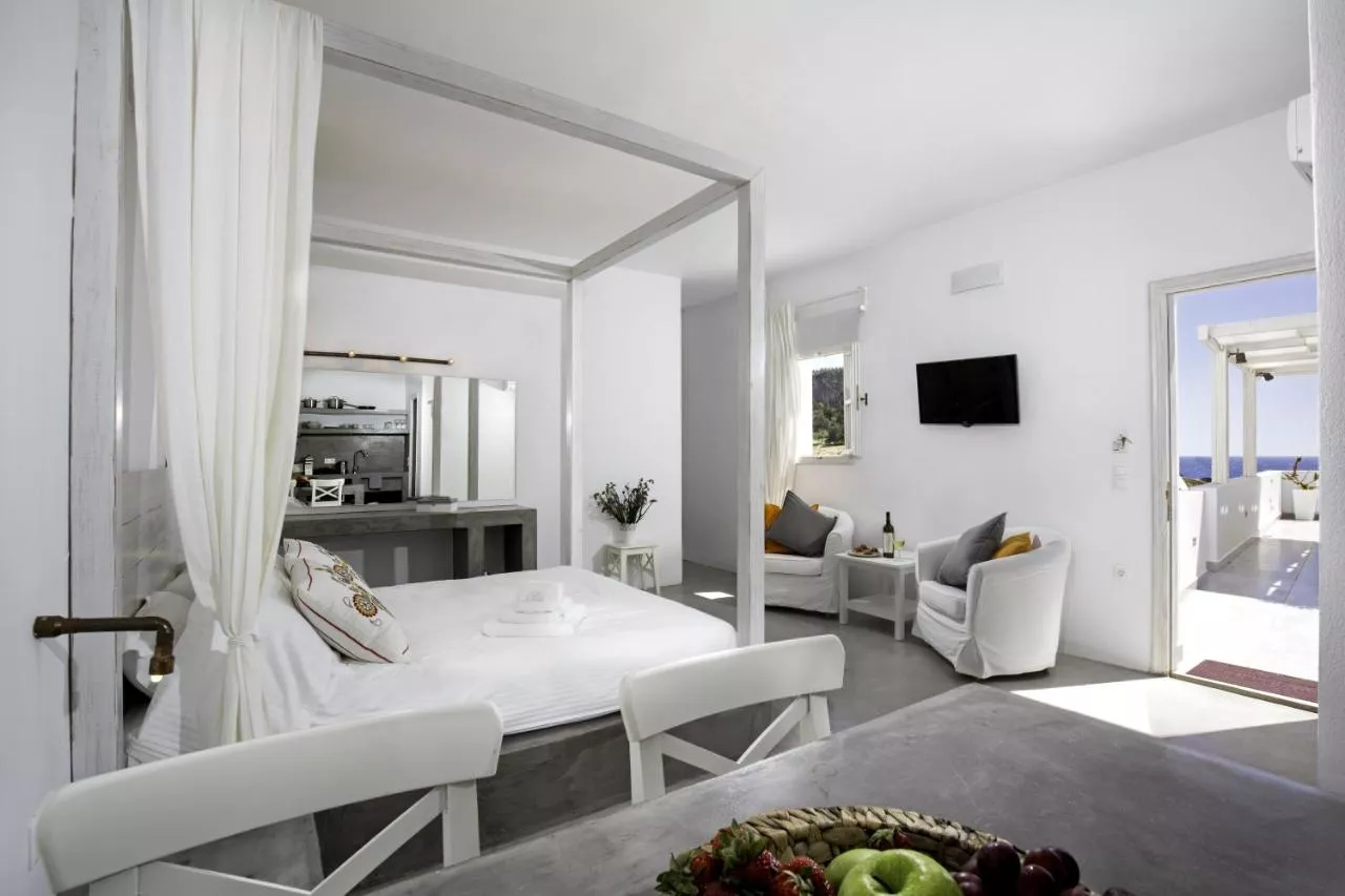 Dimensiuni: 30 mp Numar de camere: 2 camere Fitted with a four-poster bed featuring a Coco-Mat mattress and stylish decoration in grey and white tones, this air-conditioned studio opens to a private balcony with Aegean Sea and Acropolis views. It offers: