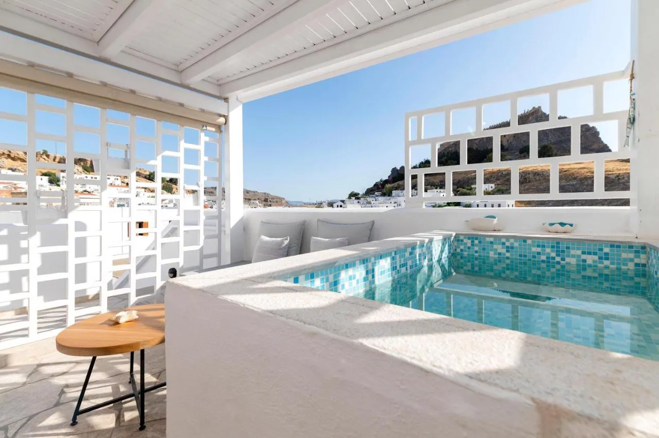 This suite features air conditioning, kitchenware and a balcony with private unheated plunge pool.