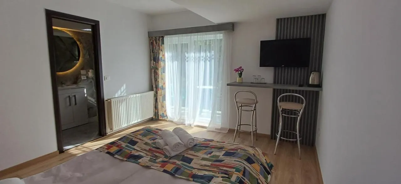 Dimensiuni: 15 mp Numar de camere: 2 camere This double room offers free toiletries and a private bathroom with a shower and a hairdryer. It also has a flat-screen TV with cable channels, a private entrance, a tea and coffee maker, a wardrobe, and garden views. The unit has 1 bed.