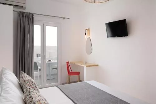 Sunray Lodgings este situat într-o clădire tradițională în stil cicladic, la doar 100 de metri de Plaja Kamari. Oferă cazare cu autoservire în studiouri și apartamente cu vedere la mare și la munte.