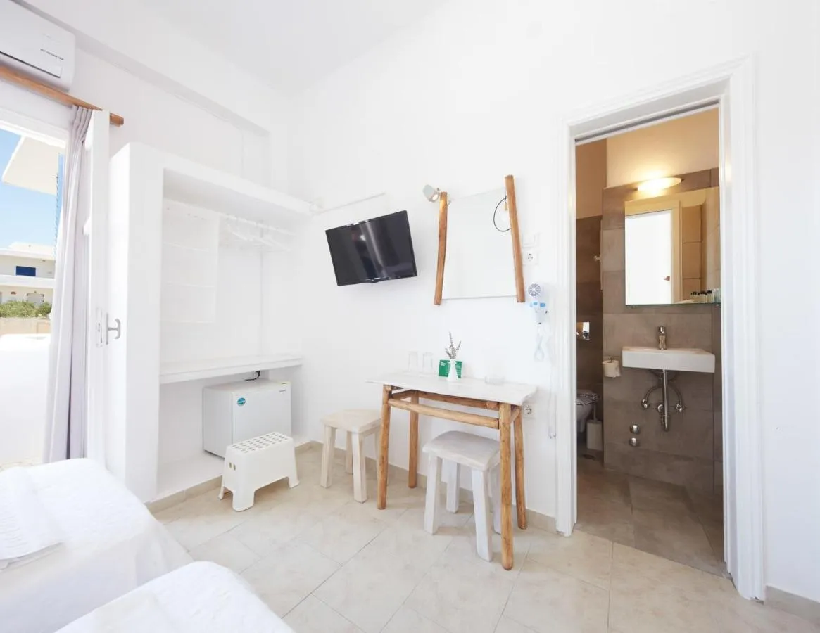 Dimensiuni: 19 mp Numar de camere: 2 camere Only 150 metres from the beach of Logaras, this room comes with a balcony, refrigerator and TV.