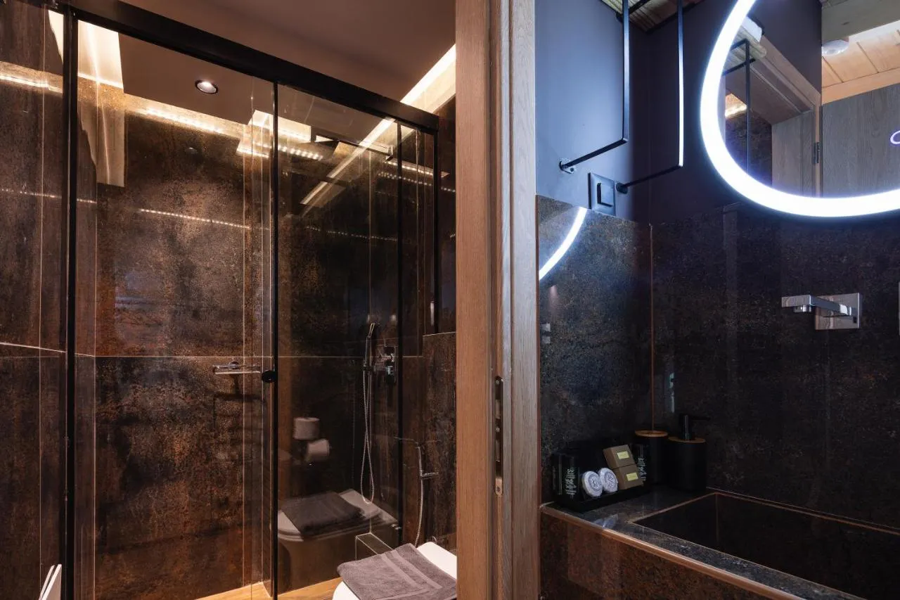 Dotată cu un duș jacuzzi de lux, un PC combinat cu TV pentru divertisment și conexiune, aer condiționat pentru confortul dumneavoastră și o mașină de espresso, suita noastră asigură o ședere relaxantă și plăcută.