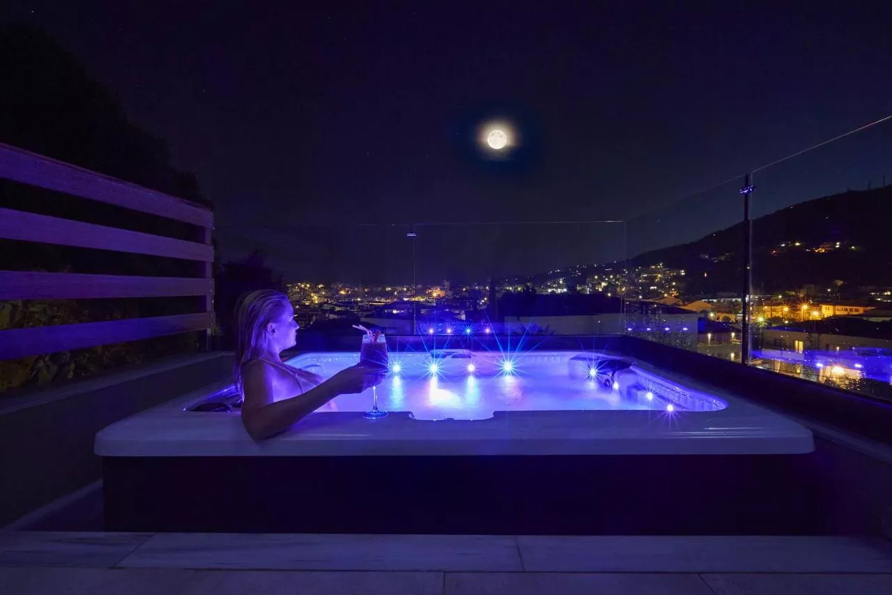 Dimensiuni: 50 mp Numar de camere: 1 camera Fitted with a hot tub, this air-conditioned suite comes with a separate bedroom. Opening to a furnished balcony with Skiathos Town and pool views, it offers a minibar and a seating area with flat-screen, satellite TV. A hairdryer and bathrobes are included and free WiFi is provided. Baie privată cu cadă