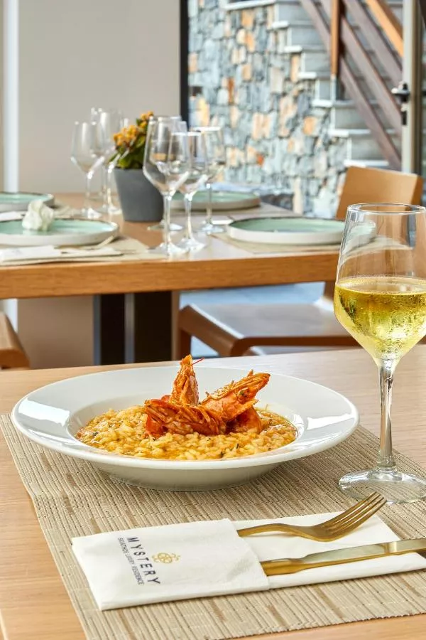 Cu interioare moderne minimaliste, tonuri de albastru marin și paturi Simmons, toate suitele Mystery au 1 sau 2 dormitoare separate și o zonă de relaxare cu televizor SMART prin satelit. Fiecare are un minibar și o baie de marmură cu uscător de păr și halate de baie.