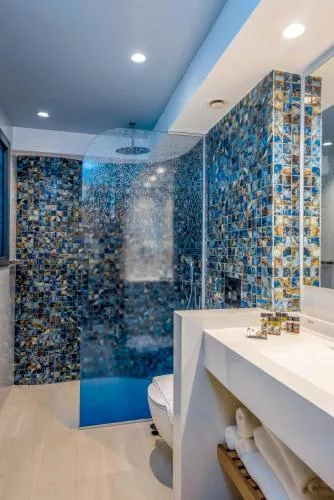 Dimensiuni: 37 mp Numar de camere: 1 camera Această suită are o piscină cu vedere. Suita are intrare privată, aer condiționat, 1 dormitor și 1 baie cu duș tip walk-in și uscător de păr. Această suită are TV cu ecran plat cu canale prin satelit, aparat de ceai și cafea și terasă cu vedere la mare. Unitatea de cazare este prevăzută cu 2 paturi. Baie privată cu duș
