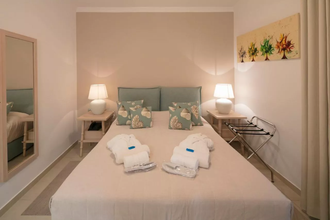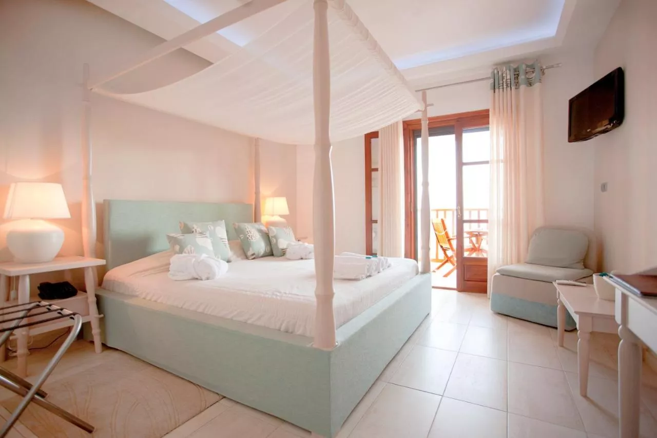 Camerele cu aer condiționat ale hotelului sunt proiectate individual și oferă balcoane cu vedere la Marea Egee. Unele sunt dotate cu televizor cu ecran plat și canale prin satelit. Băile private sunt dotate cu halate de baie și papuci.