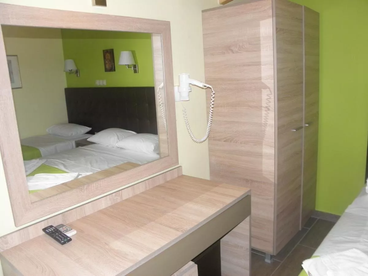 Dimensiuni: 18 mp Numar de camere: 1 camera The triple room features a safe deposit box, a tiled floor, as well as a private bathroom boasting a shower and a hairdryer. This triple room is air-conditioned and has a flat-screen TV with satellite channels, soundproof walls, a tea and coffee maker and a wardrobe. The unit has 3 beds. Baie privată cu duș