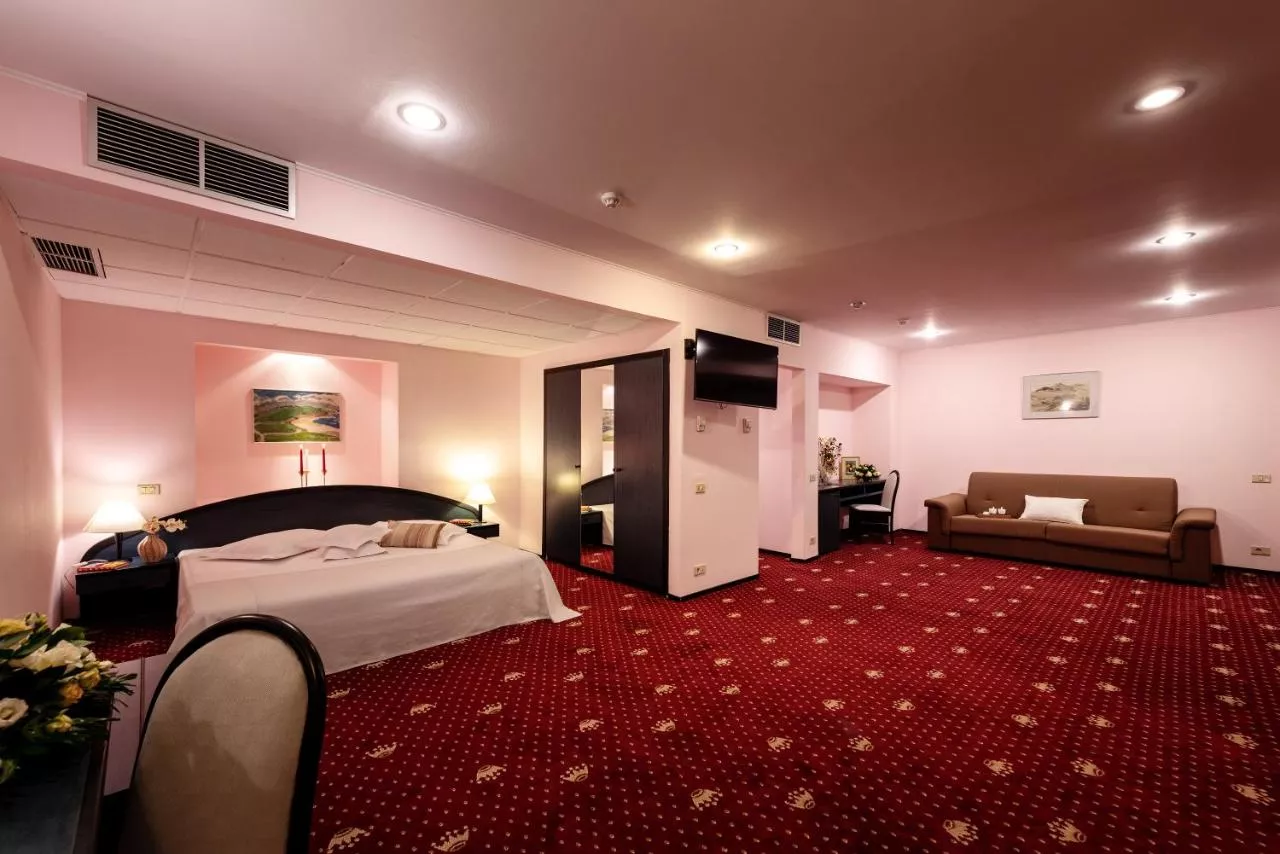 Tariful camerei include acces gratuit la piscina semiacoperită, saună, cada cu hidromasaj și centrul de fitness.