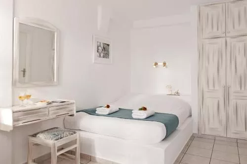 Dimensiuni: 18 mp Numar de camere: 2 camere Following the traditional Cycladic style, this air-conditioned room is located on the lower floor with a terrace right by the poolside and features Caldera views, a built-in bed and it is equipped with a satellite TV and hairdryer. Baie privată cu duș