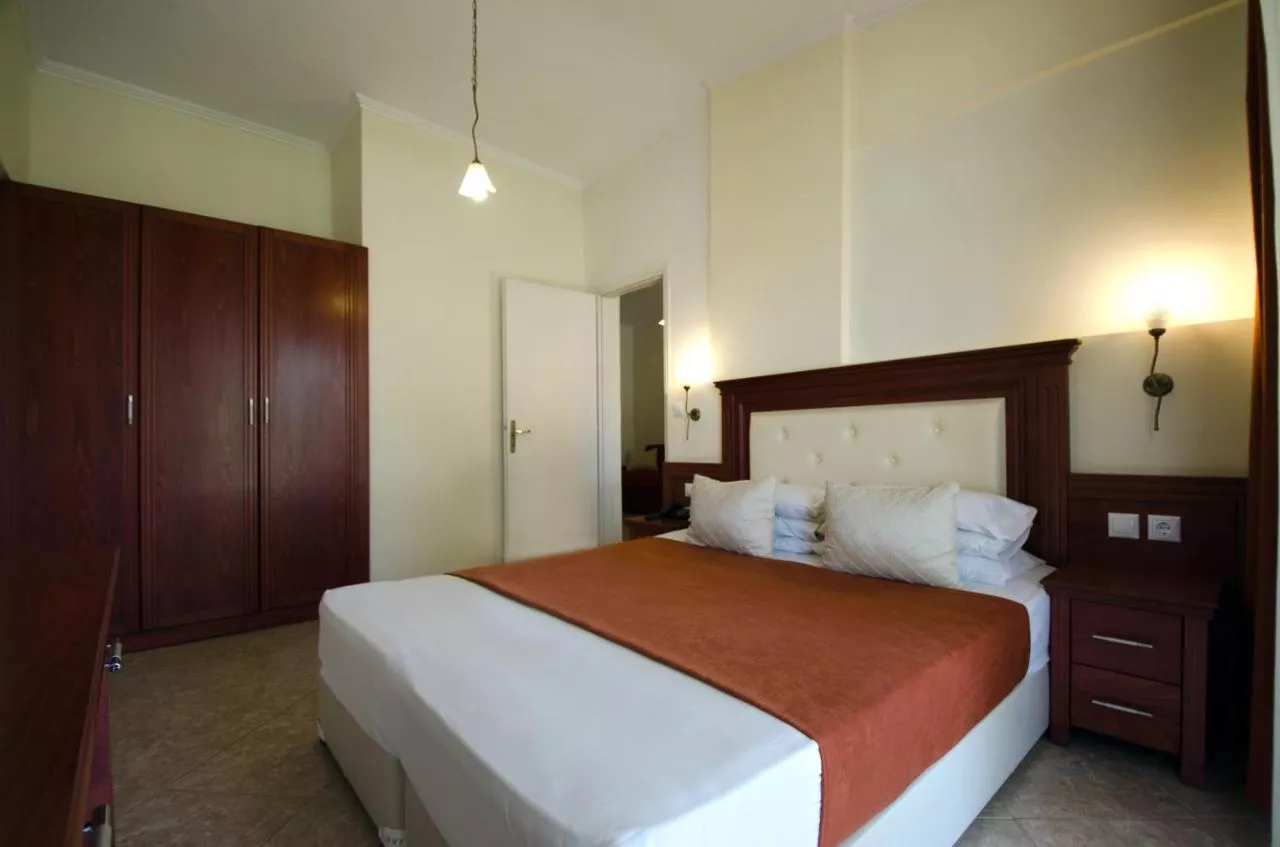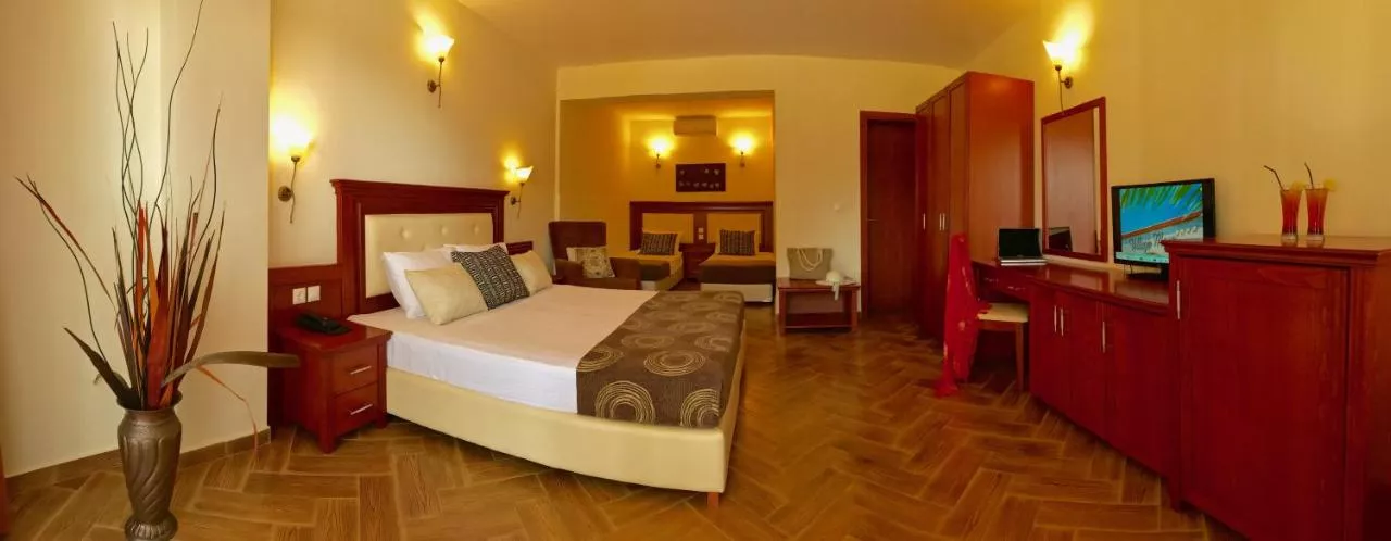 Dimensiuni: 34 mp Numar de camere: 2 camere Această cameră are aer condiționat și un pat dublu la nivelul superior. La parter se află un pat suprapus și un pat pliant. Unitatea de cazare are o verandă cu vedere la Golful Toroneos sau la grădină. De asemenea, include TV cu ecran plat cu canale prin satelit și frigider.