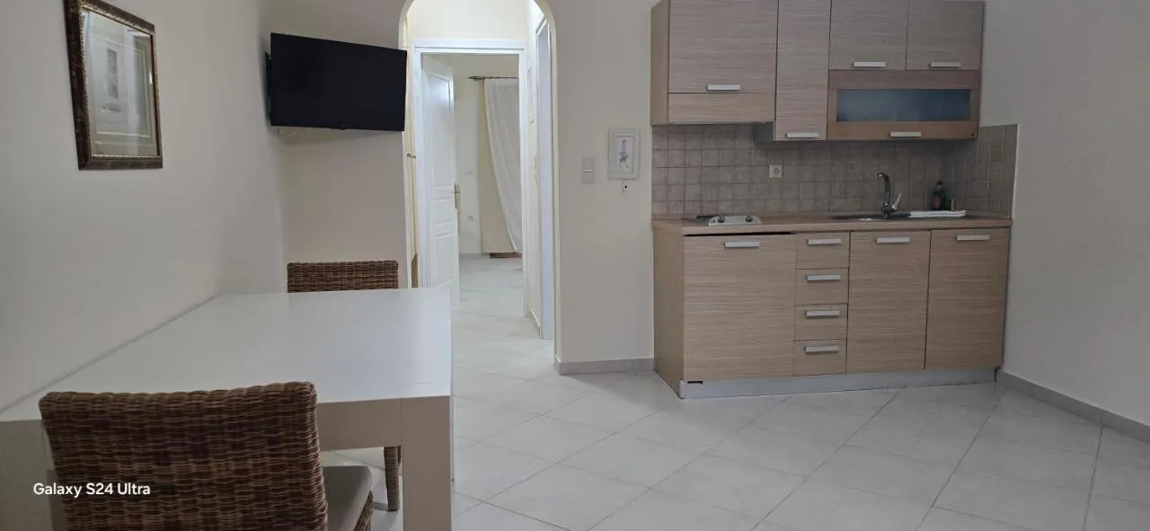 Cu mobilier modern, studiourile și apartamentele spațioase de la Margaritari includ o chicinetă cu frigider și zonă de luat masa. Fiecare are aer condiționat și televizor cu satelit.