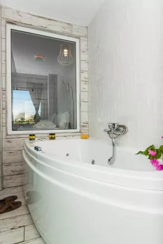 Dimensiuni: 16 mp Numar de camere: 2 camere The hot tub is a top feature of this suite. The air-conditioned suite has 1 bedroom and 1 bathroom with a bath. The suite features a wardrobe, an electric kettle, a tiled floor, a flat-screen TV with satellite channels, as well as sea views. The unit has 1 bed. Baie privată cu cadă
