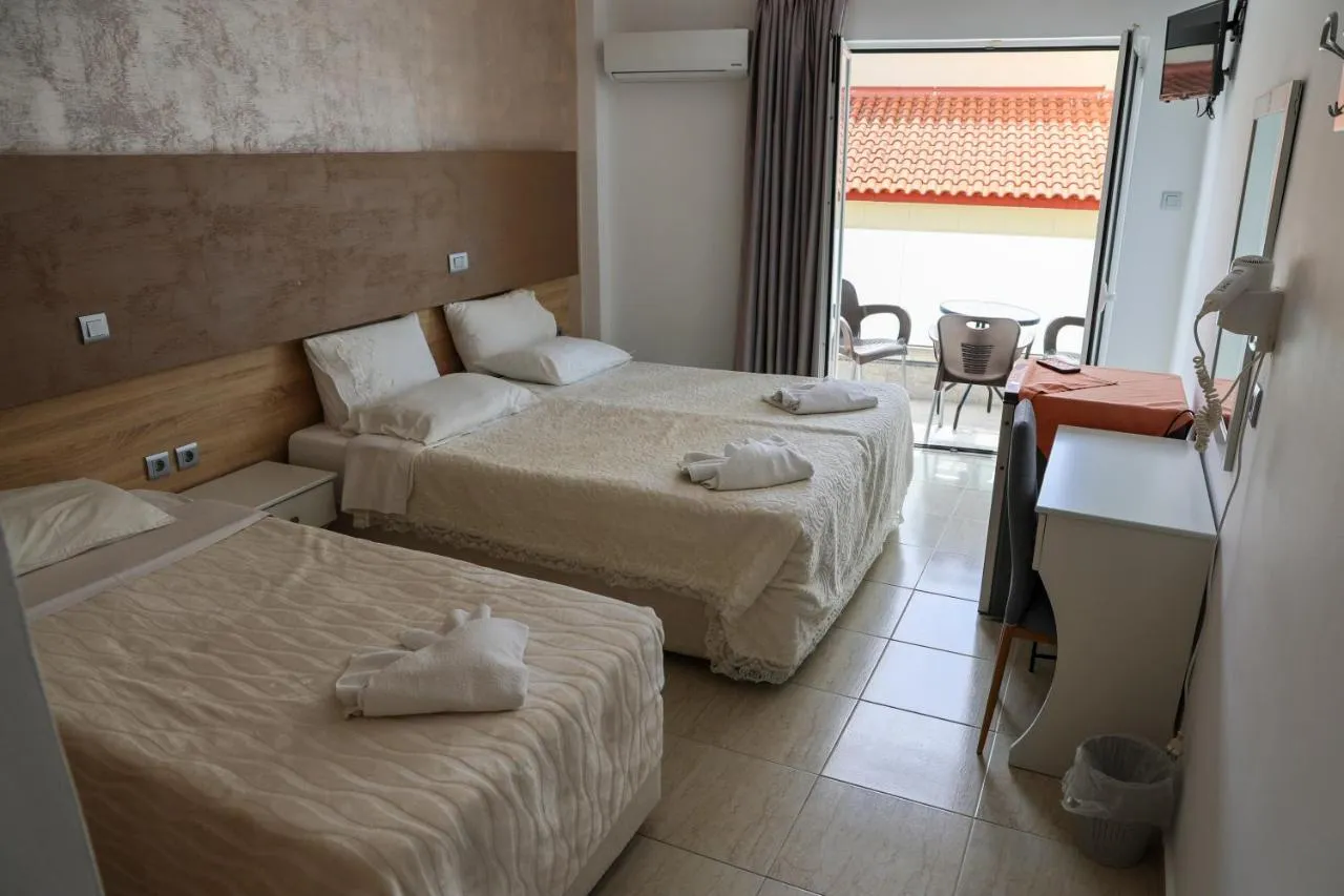 Dimensiuni: 18 mp Numar de camere: 1 camera All air-conditioned rooms have a TV, minibar and a private balcony overlooking the main road or the nearby church. Baie privată cu duș