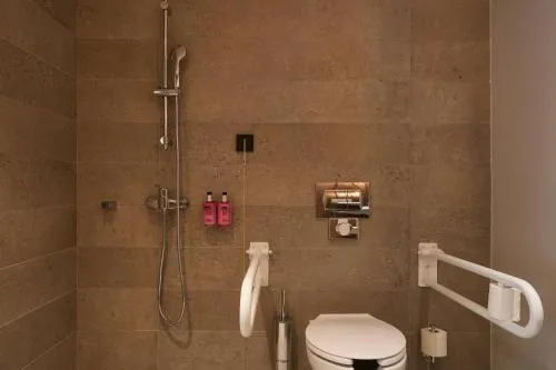 General : Seif Pardoseală de lemn sau parchet Hipoalergică Pardoseală de gresie/marmură Intrare privată Încălzire Izolare fonică Aer condiţionat Accesibilitate: Etaje superioare accesibile cu liftul Întreaga unitate accesibilă cu scaunul cu rotile Unitate situată integral la parter Media/Tehnologie: TV cu ecran plat TV Telefon Canale prin cablu Canale prin satelit Dormitor: Paturi extra lungi (> 2 metri) Lenjerie de pat Servicii: Serviciu de trezire Baie: Prosoape Articole de toaletă gratuite Uscător de păr Toaletă Duş Hârtie igienică Baie privată Facilităţile camerei: Priză lângă pat Bucătărie: Frigider Vedere: Vedere la oraș