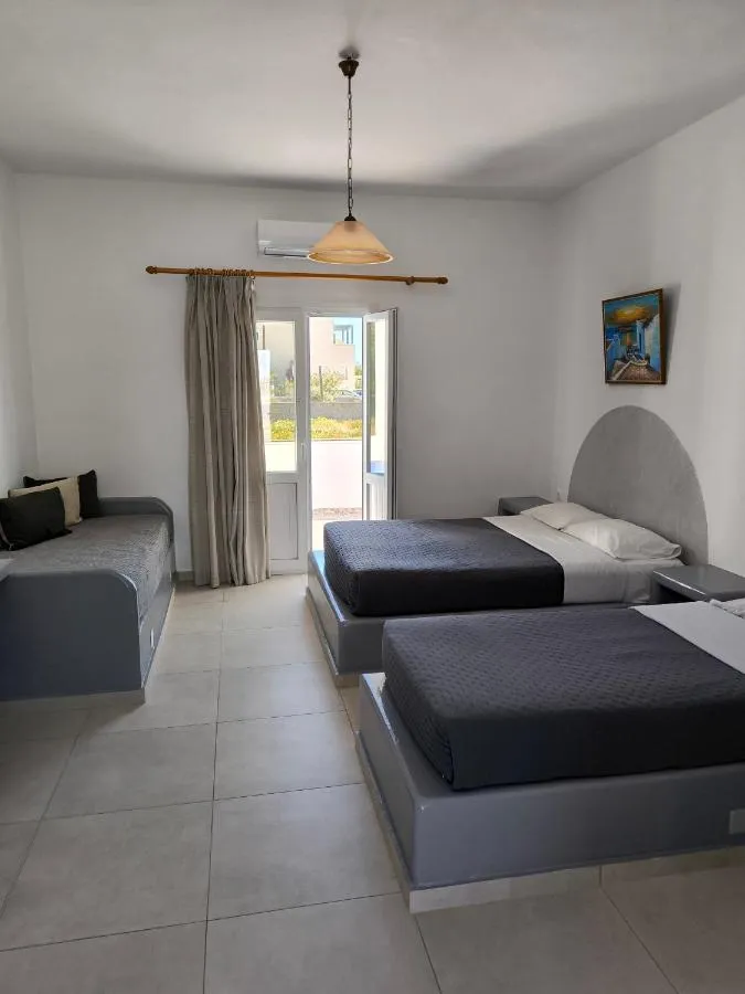 Construit în stilul arhitectural cicladic, Mary Rooms dispune de 11 camere aerisite și spațioase. Fiecare este dotată cu aer condiționat și un frigider.
