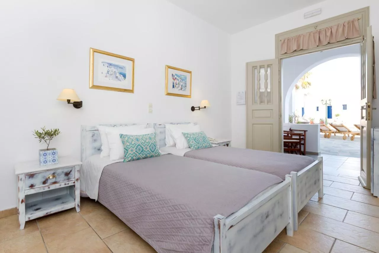 Amplasate printre viile verzi ale liniștitului sat Akrotiri, camerele cu aer condiționat ale Hotelului Mathios sunt dotate cu televizor prin satelit, minibar și o baie privată cu uscător de păr. Fiecare unitate are un balcon.