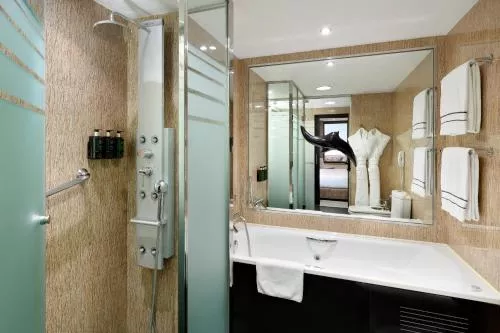 General : Seif pentru laptop Seif Ventilator Intrare privată Încălzire Aer condiţionat Baie: Halat de baie Prosoape Articole de toaletă gratuite Papuci de casă Uscător de păr Toaletă Duş bideu Hârtie igienică Cadă Baie privată Bucătărie: Mașină de cafea Cană fierbător Accesibilitate: Etaje superioare accesibile cu liftul Media/Tehnologie: TV cu ecran plat Canale cu plată TV Telefon Canale prin cablu Canale prin satelit Servicii: Acces la Executive Lounge Serviciu de trezire Dormitor: Paturi extra lungi (> 2 metri) Lenjerie de pat Garderobă sau dulap Facilităţile camerei: Priză lângă pat Mâncăruri și băuturi: Aparat pentru prepararea de ceai/cafea Minibar Vedere: Vedere la oraș