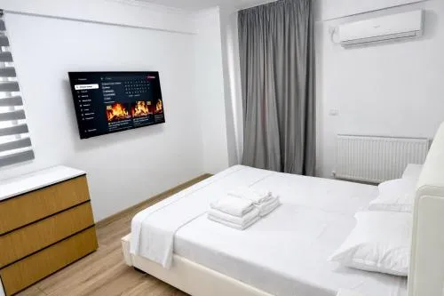 Dimensiuni: 80 mp Numar de camere: 3 camere This spacious apartment comprises 1 living room, 2 separate bedrooms and 1 bathroom with a shower and a hairdryer. The apartment's kitchen, which features a stovetop and a microwave, is available for cooking and storing food. The air-conditioned apartment provides a flat-screen TV with cable channels, a washing machine, soundproof walls, a tea and coffee maker as well as sea views. The unit offers 3 beds.