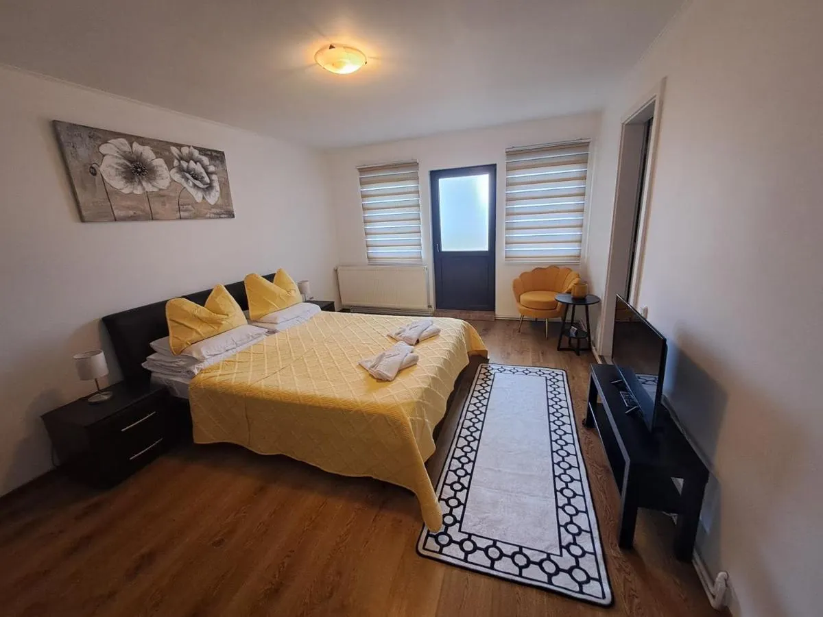 Dimensiuni: 50 mp Numar de camere: 1 camera Bucătăria este utilată cu plită, frigider, ustensile de bucătărie și cuptor cu microunde. Această cameră de familie spațioasă are intrare privată, zonă de luat masa, baie privată cu duș și terasă cu vedere la munte. Unitatea este prevăzută cu 2 paturi. Baie privată cu duș