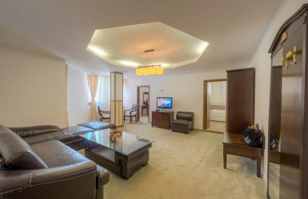 Dimensiuni: 60 mp Numar de camere: 2 camere This spacious suite comprises 1 living room, 1 separate bedroom and 1 bathroom with a walk-in shower and free toiletries. Featuring a balcony with mountain views, this suite also provides a minibar and a flat-screen TV with cable channels. The unit offers 2 beds. Baie privată cu cadă