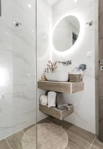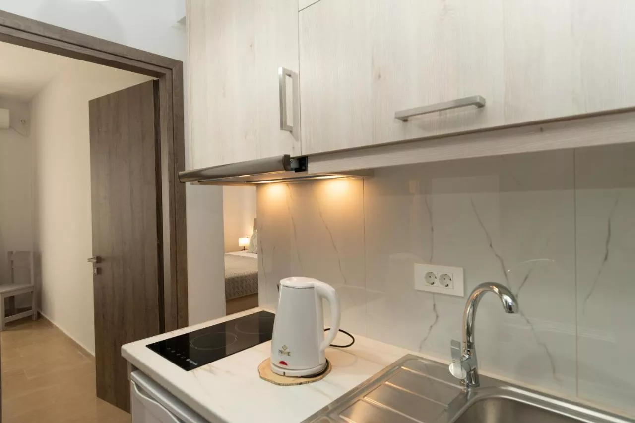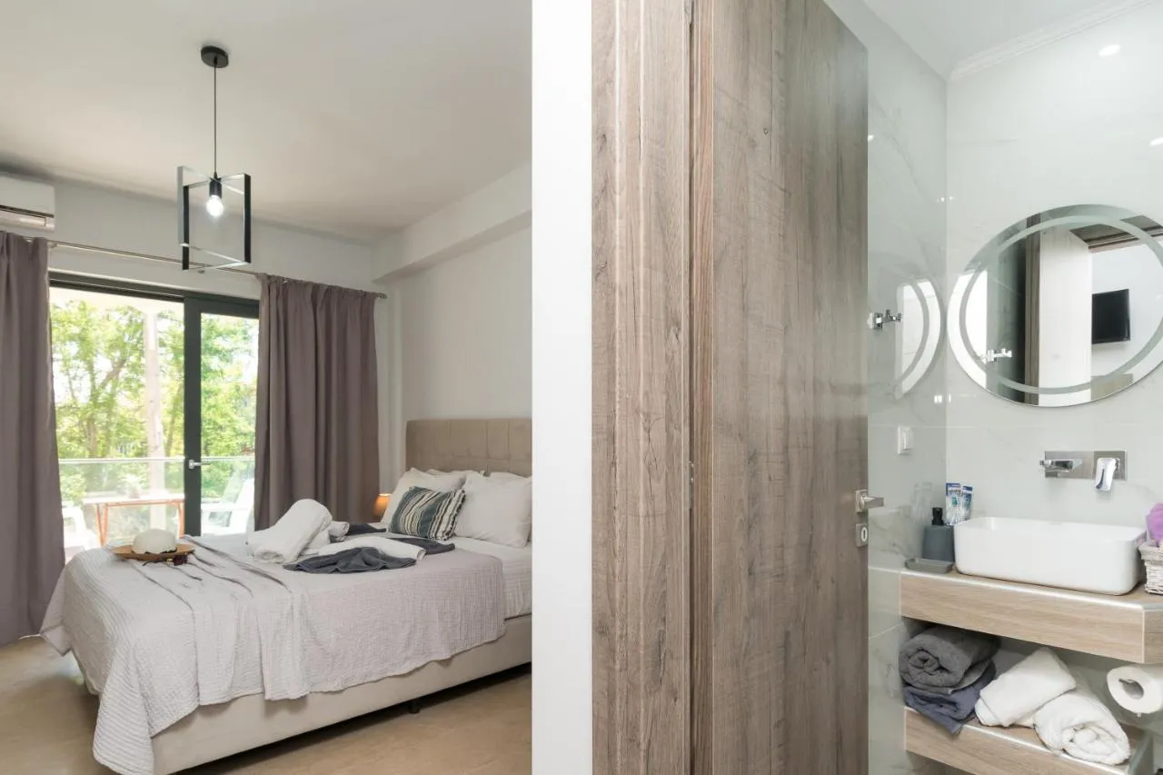 Bucătărie: Mașină de cafea Frigider Plită de gătit Ustensile de bucătărie Chicinetă Cană fierbător Bucătărie General : Seif Pardoseală de gresie/marmură Intrare privată Aer condiţionat Vedere: Vedere la mare Accesibilitate: Etaje superioare accesibile doar pe scări Media/Tehnologie: TV cu ecran plat TV Exterior: Mobilier de grădină Patio Balcon Baie: Prosoape Uscător de păr Toaletă Duş Hârtie igienică Baie privată Caracteristicile clădirii: Apartament privat în clădire Facilităţile camerei: Priză lângă pat Dormitor: Lenjerie de pat Garderobă sau dulap Distanțare fizică: Aer condiționat individual pentru fiecare cameră de la proprietate Curățenie și dezinfectare: Dezinfectant pentru mâini